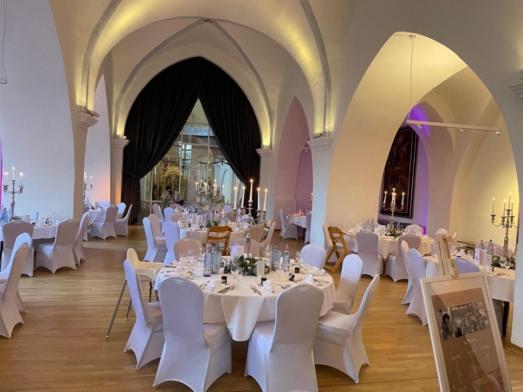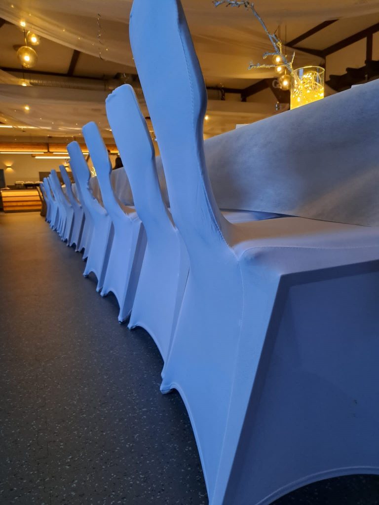 Für Dein Event bieten wir Dir schöne champagnerfarbige und weiße Hussen aus einem flexiblen Stretchmaterial. Selbstverständlich werden alle Hussen nach jedem Event sorgfältig gereinigt.